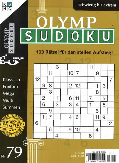 Sie erhalten OLYMP SUDOKU ab der nächst erreichbaren Ausgabe zum Heftpreis von zur Zeit 6,30 € (inkl. MwSt. und Versand). OLYMP SUDOKU erscheint zur Zeit 6 x im Jahr. Sie erhalten im Jahresabonnement 6 Ausgaben und im Halbjahresabonnement 3 Ausgaben.