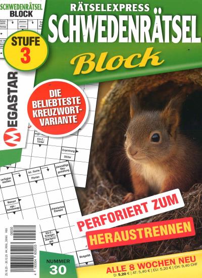 Sie erhalten SCHWEDENRÄTSEL BLOCK ab der nächst erreichbaren Ausgabe zum Heftpreis von zur Zeit 7,70 € (inkl. MwSt. und Versand). SCHWEDENRÄTSEL BLOCK erscheint zur Zeit 7 x im Jahr. Sie erhalten im Jahresabonnement 7 Ausgaben.