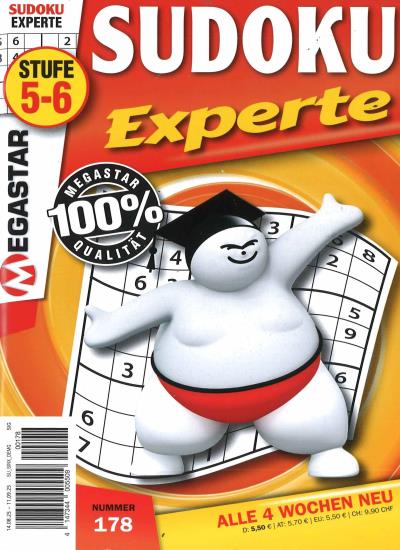 Sie erhalten SUDOKU EXPERTE ab der nächst erreichbaren Ausgabe zum Heftpreis von zur Zeit 7,20 € (inkl. MwSt. und Versand). SUDOKU EXPERTE erscheint zur Zeit 12 x im Jahr. Sie erhalten im Jahresabonnement 12 Ausgaben, im Halbjahresabonnement 6 Ausgaben und im Vierteljahresabonnement 3 Ausgaben.