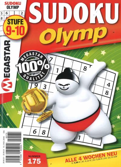Sie erhalten SUDOKU OLYMP ab der nächst erreichbaren Ausgabe zum Heftpreis von zur Zeit 7,80 € (inkl. MwSt. und Versand). SUDOKU OLYMP erscheint zur Zeit 12 x im Jahr. Sie erhalten im Jahresabonnement 12 Ausgaben, im Halbjahresabonnement 6 Ausgaben und im Vierteljahresabonnement 3 Ausgaben.