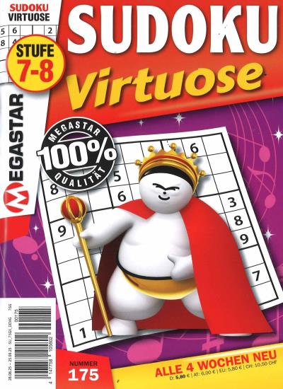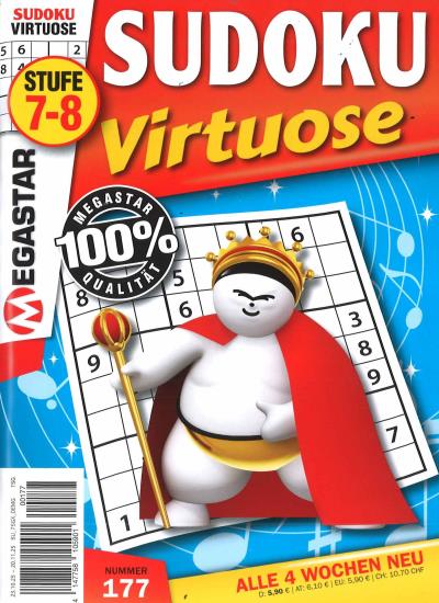 Sie erhalten SUDOKU VIRTUOSE ab der nächst erreichbaren Ausgabe zum Heftpreis von zur Zeit 7,70 € (inkl. MwSt. und Versand). SUDOKU VIRTUOSE erscheint zur Zeit 12 x im Jahr. Sie erhalten im Jahresabonnement 12 Ausgaben, im Halbjahresabonnement 6 Ausgaben und im Vierteljahresabonnement 3 Ausgaben.