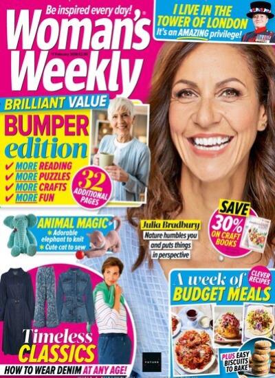 WOMAN`S WEEKLY ist eine Wochenzeitschrift für die Frau von heute, die neben schicker Mode, Kosmetik, Haushaltstipps und praktikablen Wohnideen auch hübsche Handarbeiten und tolle Reisebeschreibungen anbietet.