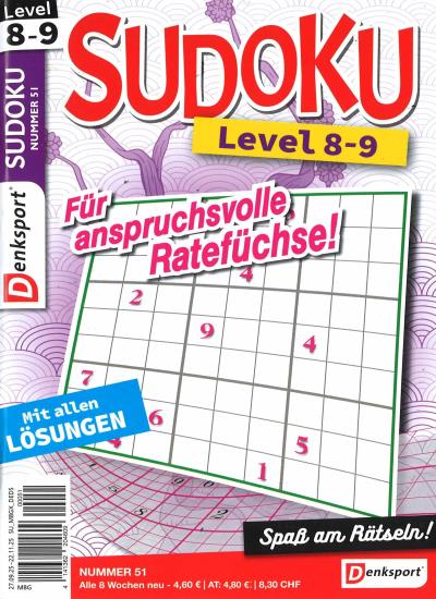 Auf 96 Seiten enthält das Magazin das beliebte Zahlenrätsel in den Schwierigkeitsstufe: Level 8, Level 8-9 und Level 9. Als Extra befinden sechs Rätsel der Variante Sudoku Killer (inklusive Erklärung) in diesem Heft