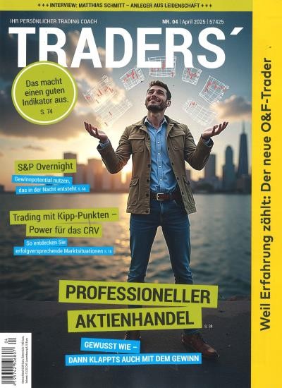Das Magazin TRADERS hat sich als Informations- und Kommunikationsbasis der Trader-Elite etabliert. Aktuelle Informationen über technische, mathematische Hilfsmittel und psychologische Aspekte der Märkte werden sowohl in Fachartikeln als auch Interviews erörtert. Hier findet der professionelle Investor seine Dialog-Basis, um sein Wissen zu aktualisieren und auszubauen. TRADERS hat sich mittlerweile so gut am Markt etabliert, dass es schon mehrfach als bestes Magazin für Trader weltweit ausgezeichnet wurde.