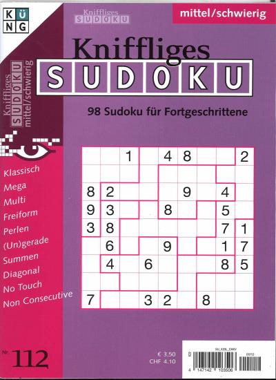 Sie erhalten KNIFFLIGES SUDOKU ab der nächst erreichbaren Ausgabe zum Heftpreis von zur Zeit 3,90 € (inkl. MwSt. und Versand). KNIFFLIGES SUDOKU erscheint zur Zeit 6 x im Jahr. Sie erhalten im Jahresabonnement 6 Ausgaben.