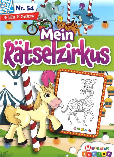 Mit 'Mein Rätselzirkus“ im fröhlichen Design tauchen Kinder im Alter von 4 bis 6 Jahren in die bunte Rätselwelt von Megastar. Das Heft besteht aus kindgerechten Motiven der vier Kreativrätselarten Labyrinth, Fehlersuche, Punkt zu Punkt und Ausmalbild. Zur Kontrolle sind am Heftende alle Motivlösungen aufgeführt.