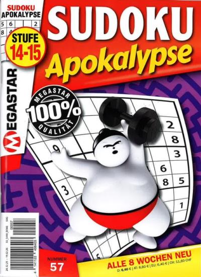Sie erhalten SUDOKU APOKALYPSE ab der nächst erreichbaren Ausgabe zum Heftpreis von zur Zeit 6,40 € (inkl. MwSt. und Versand). SUDOKU APOKALYPSE erscheint zur Zeit 6 x im Jahr. Sie erhalten im Jahresabonnement 6 Ausgaben.