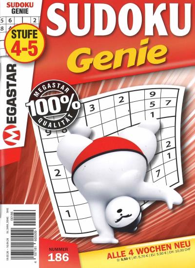 Sie erhalten SUDOKU GENIE ab der nächst erreichbaren Ausgabe zum Heftpreis von zur Zeit 5,50 € (inkl. MwSt. und Versand). SUDOKU GENIE erscheint zur Zeit 12 x im Jahr. Sie erhalten im Jahresabonnement 12 Ausgaben.