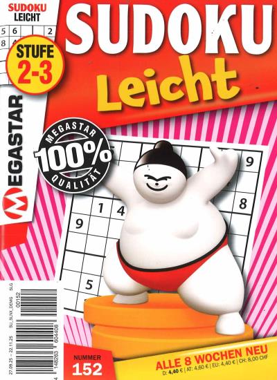 Sie erhalten SUDOKU LEICHT ab der nächst erreichbaren Ausgabe zum Heftpreis von zur Zeit 4,40 € (inkl. MwSt. und Versand). SUDOKU LEICHT erscheint zur Zeit 6 x im Jahr. Sie erhalten im Jahresabonnement 6 Ausgaben.
