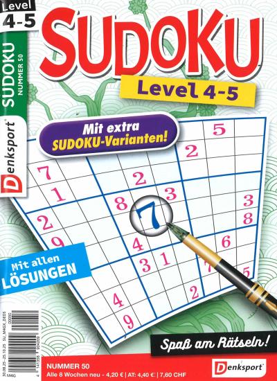 Sie erhalten SUDOKU LEVEL 4-5 ab der nächst erreichbaren Ausgabe zum Heftpreis von zur Zeit 4,30 € (inkl. MwSt. und Versand). SUDOKU LEVEL 4-5 erscheint zur Zeit 6 x im Jahr. Sie erhalten im Jahresabonnement 6 Ausgaben.