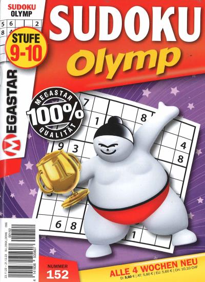 Sie erhalten SUDOKU OLYMP ab der nächst erreichbaren Ausgabe zum Heftpreis von zur Zeit 6,00 € (inkl. MwSt. und Versand). SUDOKU OLYMP erscheint zur Zeit 12 x im Jahr. Sie erhalten im Jahresabonnement 12 Ausgaben.