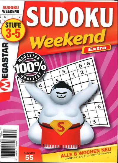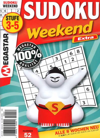 Sie erhalten SUDOKU WEEKEND EXTRA ab der nächst erreichbaren Ausgabe zum Heftpreis von zur Zeit 5,60 € (inkl. MwSt. und Versand). SUDOKU WEEKEND EXTRA erscheint zur Zeit 6 x im Jahr. Sie erhalten im Jahresabonnement 6 Ausgaben.