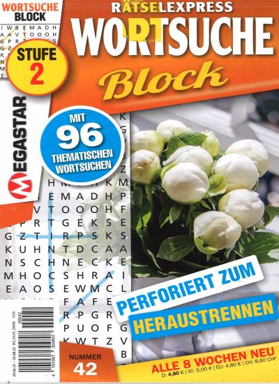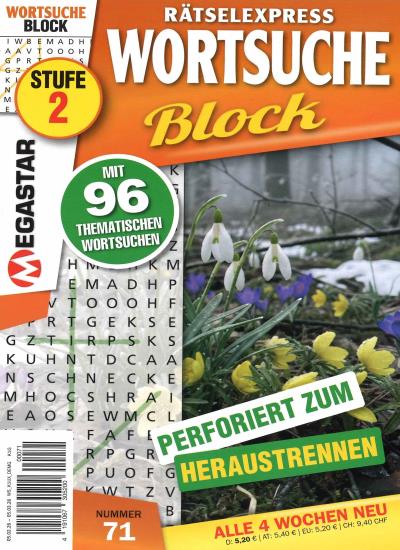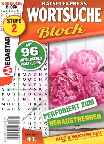 Sie erhalten WORTSUCHE BLOCK ab der nächst erreichbaren Ausgabe zum Heftpreis von zur Zeit 5,20 € (inkl. MwSt. und Versand). WORTSUCHE BLOCK erscheint zur Zeit 12 x im Jahr. Sie erhalten im Jahresabonnement 12 Ausgaben.