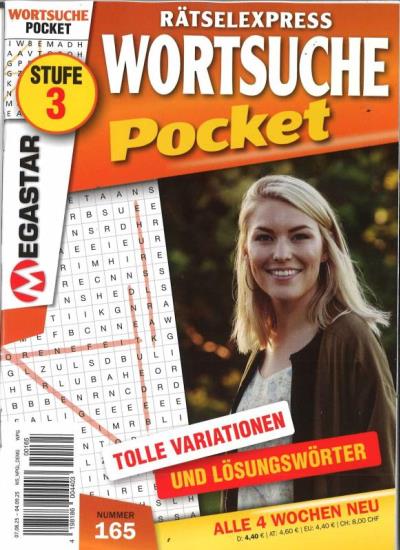 Sie erhalten WORTSUCHE POCKET ab der nächst erreichbaren Ausgabe zum Heftpreis von zur Zeit 4,40 € (inkl. MwSt. und Versand). WORTSUCHE POCKET erscheint zur Zeit 12 x im Jahr. Sie erhalten im Jahresabonnement 12 Ausgaben.